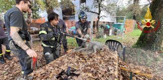 I VIGILI DEL FUOCO SALVANO UN CANE DA CACCIA INTRAPPOLATO NEL...