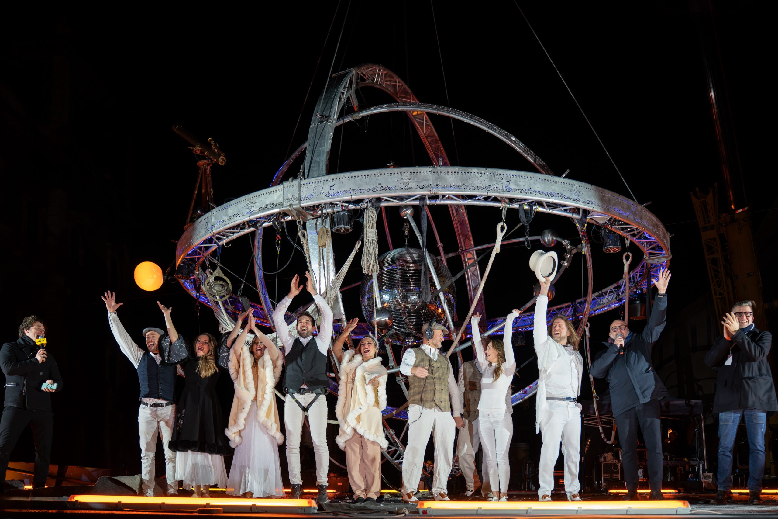 Il conto alla rovescia è esploso sul palco di Piazza Roma. Pochi secondi per salutare il 2025 e accogliere il 2026 con un vero e proprio spettacolo che ha saputo trasformare un patrimonio UNESCO in un grande teatro sotto le stelle. Protagonista della serata è stato “Galileo”, il visionario spettacolo della compagnia francese Deus ex Machina che ha incantato il pubblico con danzatori aerei, acrobazie mozzafiato sospese a 50 metri d’altezza, musica e tecnologie multimediali sulle storiche facciate. Oltre 4mila le persone che hanno seguito lo show fino a pochi minuti dalla mezzanotte, quando l’attenzione si è concentrata sul countdown collettivo guidato dal sindaco Massimo Mezzetti, prima di scatenarsi con il dj set che ha prolungato la festa fino all’una. Ma la magia del Capodanno non si è fermata in città: anche a Sassuolo la notte si è accesa in piazza Garibaldi, con musica, balli e divertimento. Dalle 22.30 i cittadini hanno festeggiato con il concerto dei Sasstonik, accompagnati da La Lira e dalla conduzione musicale della serata, assaggiando anche il panettone offerto dal Comune. Poco prima della mezzanotte, il primo cittadino Matteo Mesini ha guidato il conto alla rovescia e rivolto gli auguri a tutta la comunità, per un 2026 ricco di soddisfazioni. La festa è continuata con il dj set di Becky DJ, regalando una lunga notte di allegria e comunità.