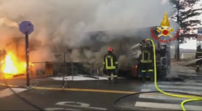 Incendio di un bus di linea verso le 16 30 a Sestola in Piazza Passerini