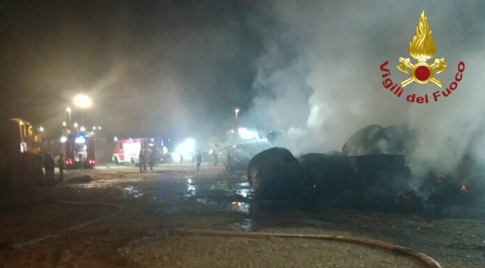 Vigili del fuoco impegnati da poco prima delle 22 di ieri sera per il vasto incendio di un cumulo di rotoballe in via Ceresa,...