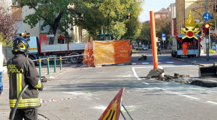 Vigili del fuoco al lavoro in via Luosi, all'incrocio con via Nicoli, per un intervento di assistenza a causa di una fuga di gas...