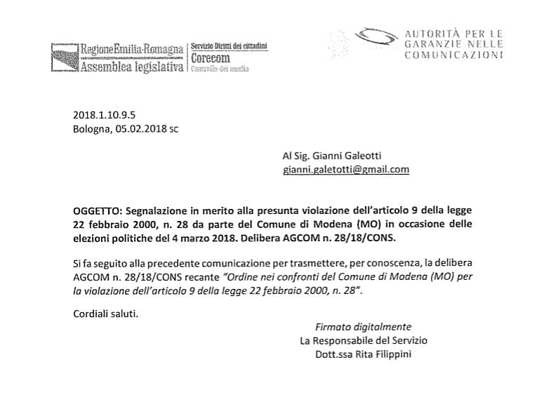DELIBERA AGCOM 5 Febbraio 2018287FacebookTwitterPinterestWhatsAppEmailTelegram ARTICOLI CORRELATIALTRO DALL'AUTORE Sport quiSPORT QUI – L’APPROFONDIMENTO SPORTIVO DI TV QUI Detto e non dettoDETTO E NON DETTO – SICUREZZA SUL LAVORO TRA STOP AND GO 1-2IN VIA TRENTO TRIESTE, COPPIA DI ANZIANI INVESTITA DA AUTO. GRAVE L’89ENNESOCIAL13,458FansMi piace214FollowerSegui100IscrittiIscriviti