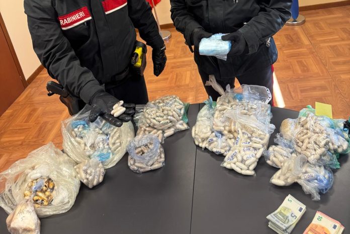 Le indagini si sono poi estese a un’abitazione vicina, dalla quale la donna era stata vista uscire poco prima del controllo. All’interno dell’appartamento i militari hanno identificato altri tre connazionali – due uomini di 47 anni e una donna di 31 – e rinvenuto ulteriori 5 chilogrammi di stupefacenti: 131 ovuli, 13 dosi termosaldate e una busta di eroina in polvere, oltre ad altri 82 ovuli e 6 scaglie di cocaina.