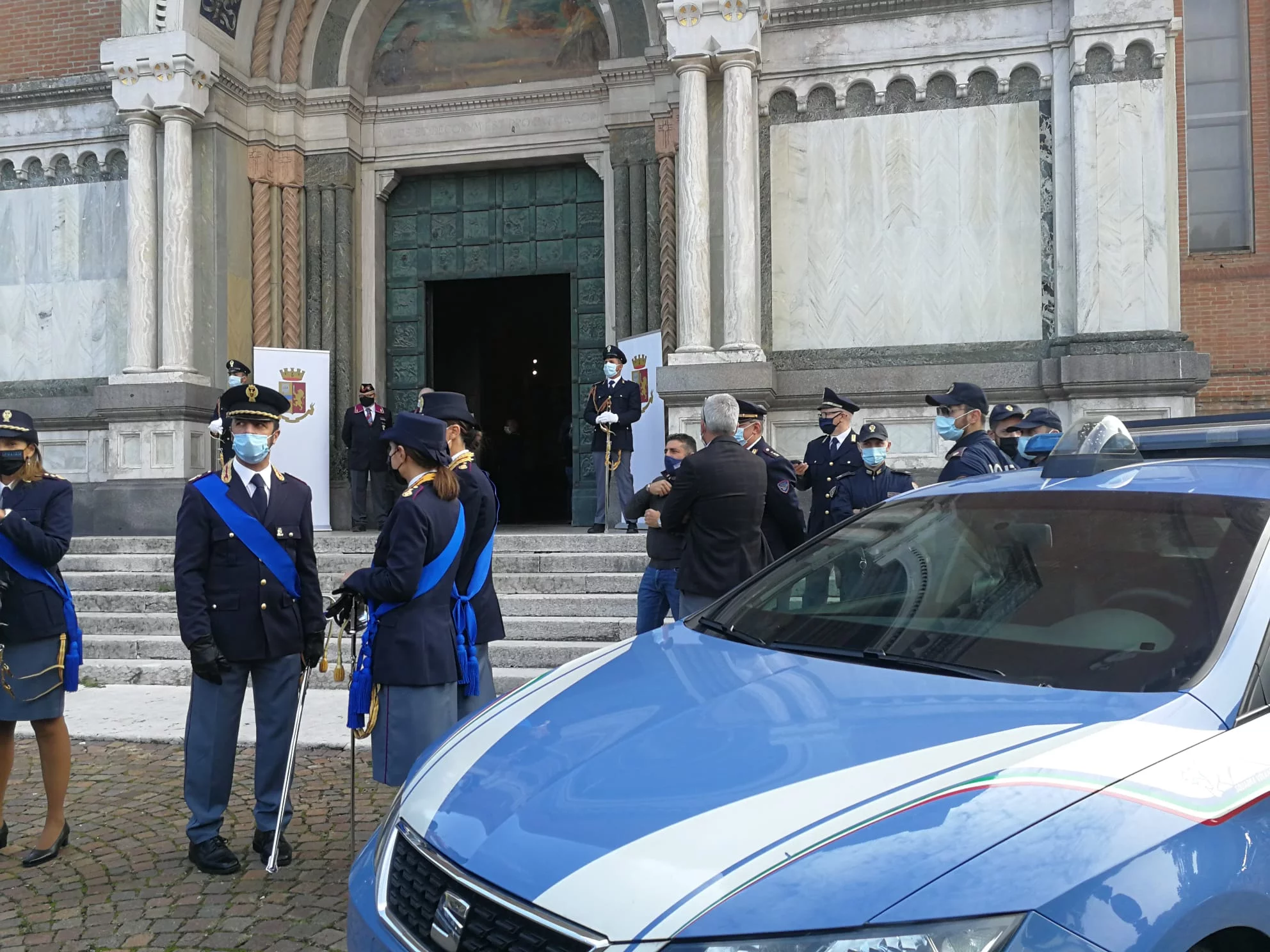 Una solenne celebrazione questa mattina ha radunato autorità cittadine e rappresentanti delle forze dell’ordine al Tempio Monumentale ai Caduti in Guerra. È qui, in via Piave, che ha avuto luogo la festa del santo Patrono della Polizia di Stato, San Michele Arcangelo. La ricorrenza, celebrata attraverso una santa Messa officiata da Monsignor Erio Castellucci, è stata un’occasione non solo per ritrovarsi all’insegna della spiritualità, ma anche per riflettere sull’importanza della sicurezza e della legalità. Quest’anno sindaci, rappresentanti delle forze dell’ordine, ma anche delle associazioni di categoria e dell’istruzione, hanno presenziato alla Santa messa distanziati, muniti di mascherine. Anche su questo, sulla pandemia che ha indistintamente influito sulla vita di tutti, si è rivolto il pensiero dei presenti. Il Questore di Modena, Maurizio Agricola, ha per l’occasione anche riflettuto su come la pandemia e il lock down abbiano influito sul bilancio dell’azione delle forze dell’ordine
