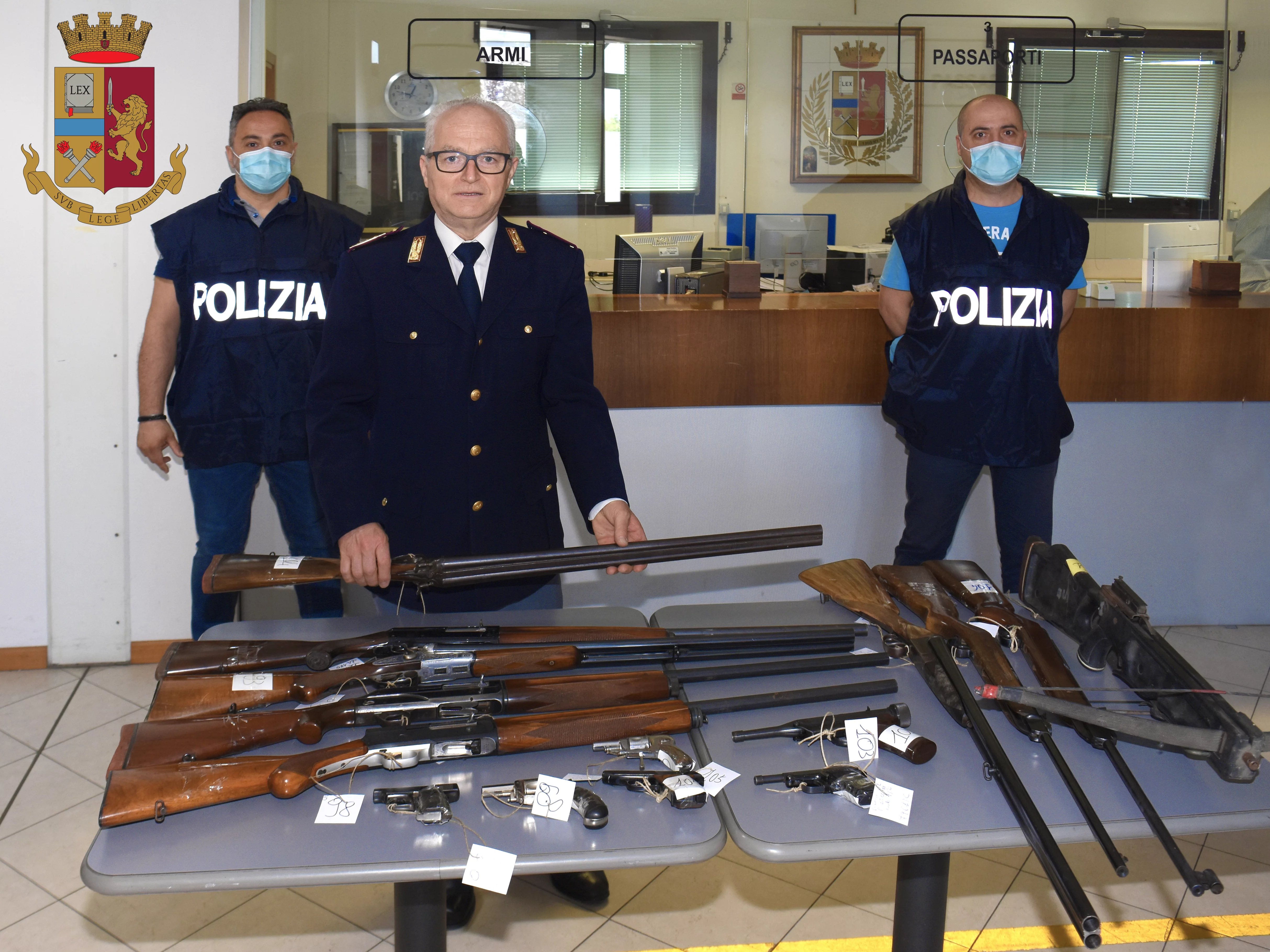 L’attività di verifica trae spunto da quella già in atto dall’Ufficio Armi della Questura volta alla verifica del possesso della certificazione medica idonea per i detentori di armi, prevista in 2 decreti legge del 2013 e del 2018. Al riguardo si segnala che sono stati già emessi numerosi provvedimenti di divieto di detenzione armi per coloro che non hanno ottemperato alla produzione della documentazione sanitaria. Per effetto di tale inibizione sono stati molti i cittadini che si sono visti costretti a rinunciare alle proprie armi (in allegato foto relativa ad una parte delle armi acquisite dalla Polizia) e a richiederne la rottamazione.