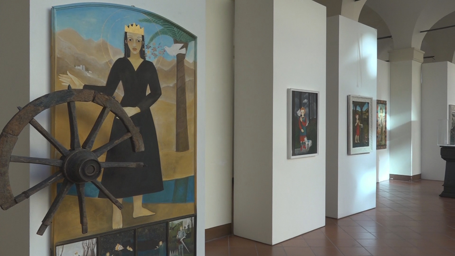 Personaggi dagli occhi larghi, allo stesso tempo dolci e timorosi, si stagliano su un mondo fiabesco, fatto di animali, piante, Santi, edifici che i modenesi riconoscono subito. C’è la bambina, immersa in un paesaggio invernale, che quando ha paura si trasforma in gatto, per darsi coraggio e trovare calore; c’è un ritratto di famiglia, che attraversa le generazioni, scandite dalle stagioni; c’è una pala raffigurante Santa Cateria d’Alessandria d’Egitto, dedicata a tutti i migranti e a chi, da lontano, li pensa. Questi sono solo tre dei ventiquattro dipinti della pittrice modenese Lucietta Righetti esposti all’Istituto Venturi di Modena nella mostra “Nonostante”. Ex studentessa della stessa scuola, per l’artista è come un ritorno a casa, una carezza, una dedica agli allievi di oggi, a cui dedica il titolo dell’esposizione