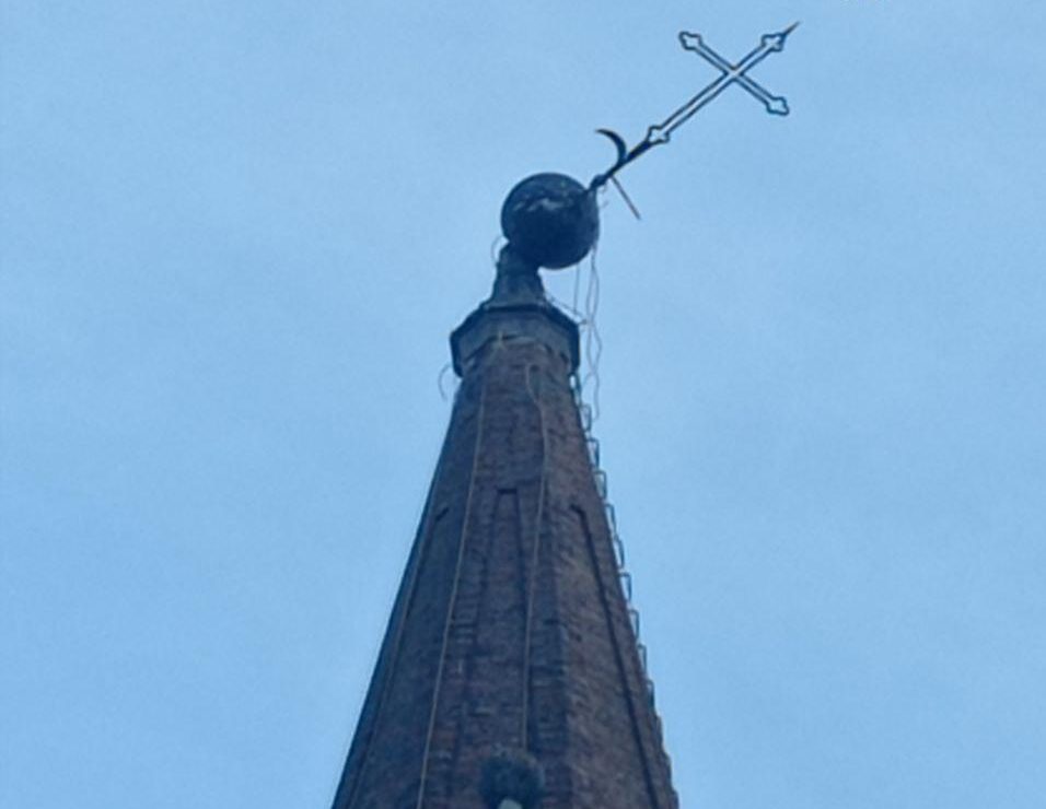 Per cause ancora da accertare, la croce, a un’altezza di oltre 40 metri, si è piegata vistosamente tanto da esser ben visibile dalla strada. In attesa di un intervento di messa in sicurezza ad opera della parrocchia è stato interdetto l’utilizzo della chiesa di Sant’Adriano Papa e di un appartamento della canonica.